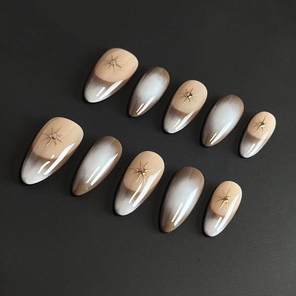 Deslumbra con nuestras uñas press-on AdornU Golden Mist. Este set presenta un degradado suave de tonos nude y marrón, adornado con delicados destellos dorados que añaden un toque de glamour. Perfectas para una ocasión especial o para elevar tu estilo diario con un toque de elegancia.