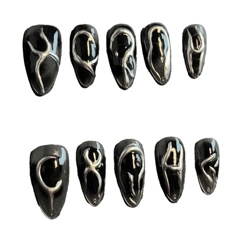 Descubre la elegancia moderna con nuestras uñas press-on AdornU Liquid Silver. Este set presenta un diseño metálico plateado con detalles de gotas que crean un look futurista y sofisticado. Perfectas para destacar en cualquier ocasión y añadir un toque de innovación a tu estilo diario.