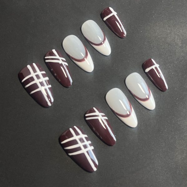 Luce un estilo refinado con nuestras exclusivas uñas press-on AdornU Modern Classic. Estas uñas, diseñadas meticulosamente a mano, combinan tonos sobrios con un diseño de líneas limpias y elegantes, creando un look que es a la vez clásico y contemporáneo.