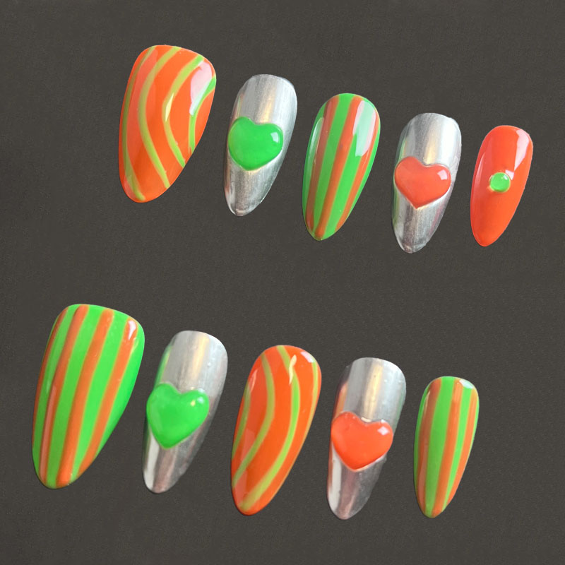 Aumenta la intensidad de tu estilo con las uñas press-on AdornU Neon Blaze. Este set destaca por su diseño de llamas vibrantes en tonos lilas y azules neón, creando un efecto llamativo y moderno. Perfectas para un look audaz que no pasará desapercibido en cualquier evento especial o para darle un toque único a tu día a día.