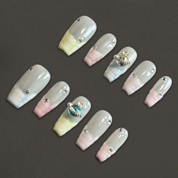 Explora un estilo celestial con nuestras uñas press-on AdornU Pastel Galaxy Rings. Este set presenta un diseño etéreo que combina tonos pastel y gris, adornado con detalles galácticos y anillos que crean un look celestial y sofisticado. Perfectas para destacar en cualquier ocasión y añadir un toque de elegancia a tu estilo diario.
