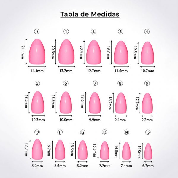 - Si tus uñas están entre dos tamaños, te recomendamos optar por el tamaño más grande.