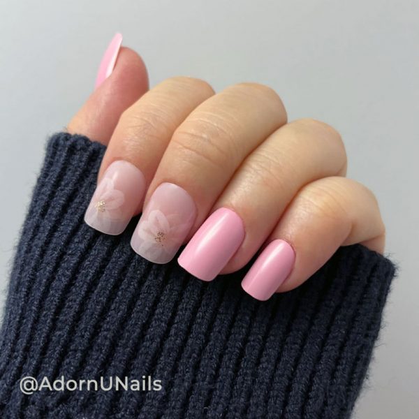 Diseño suave en rosa y blanco con flores y transparencias: delicado y etéreo.
